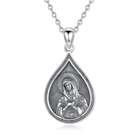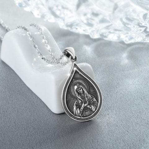 This beautiful piece of jewellery is made entirely of S925 silver. This noble material is ideal for the creation of high-quality jewellery. It features a beautiful engraving of the Virgin Mary on a teardrop-shaped pendant. Suitable for both men and women.