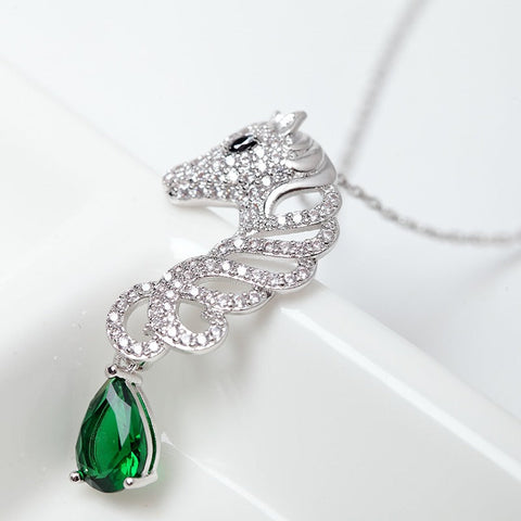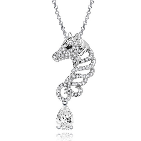 The luxurious design of this beautiful silver horse necklace and the brilliant zirconia make it seem elegant and irresistible. If you love horses and all the symbolism associated with this animal, this piece of jewellery was made for you.