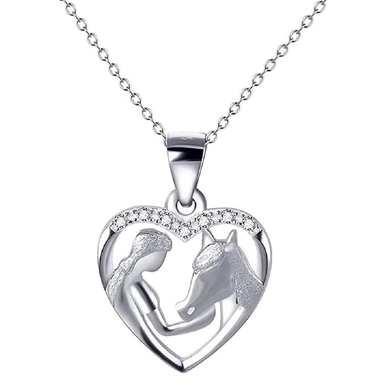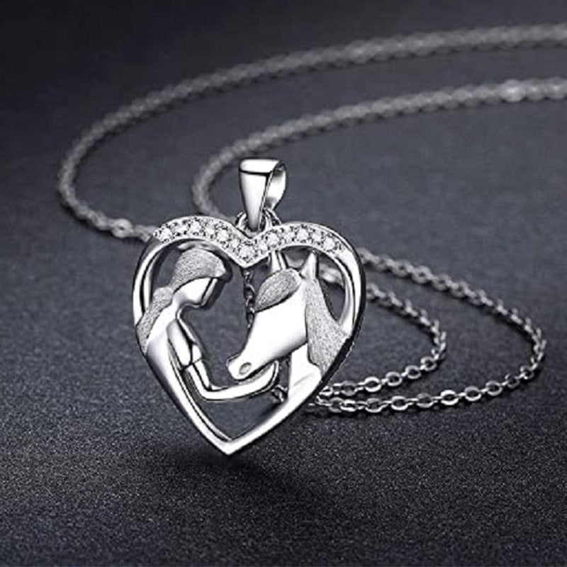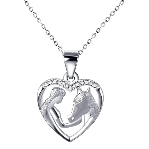 This lovely horse necklace is perfect for riding enthusiasts. The heart-shaped pendant features a horse and a passionate woman.