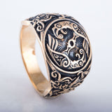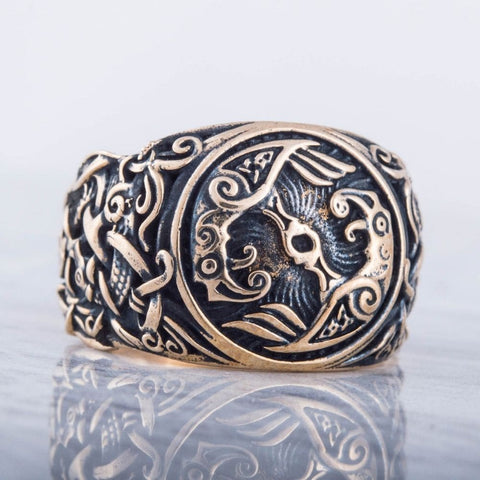 Surround your finger with Odin's most loyal companions with this bronze ring, featuring Hugin and Munin, the two raven messengers of the god Odin. In Norse mythology, these two faithful winged creatures informed their master about everything that happened in the nine worlds.