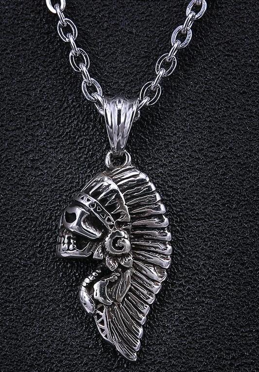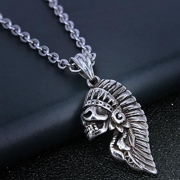 Are you a fan of indigenous products or knowledgeable about indigenous culture? Then this necklace with an indigenous skull pendant is for you! It represents the head of an Indian with a headdress.