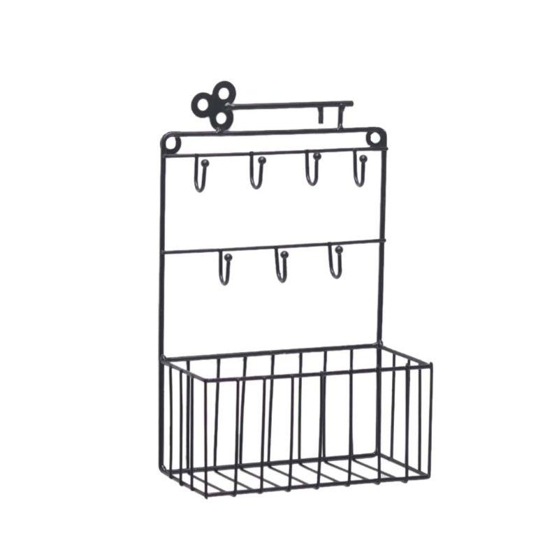 This industrial style key holder is a decorative accessory with a distinctive character. It includes a pocket basket that keeps keys and accessories safe, preventing them from getting lost. Ideal for complementing rustic or traditional decor.