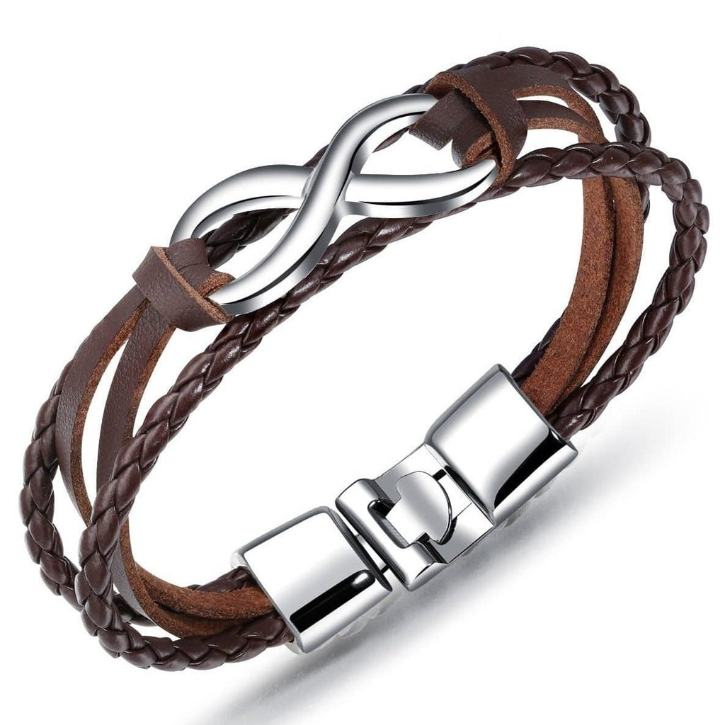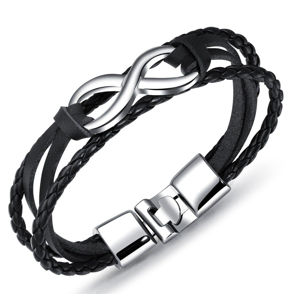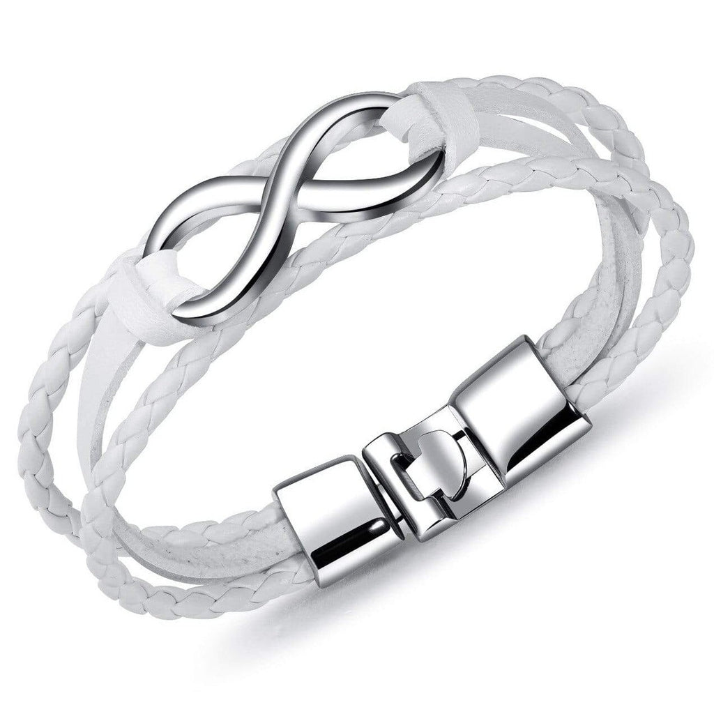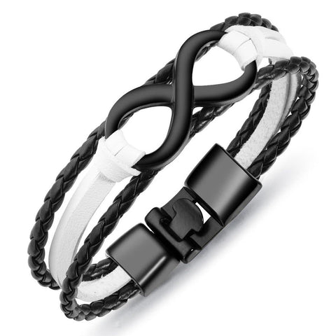 If you're looking for a modern style, this infinity bracelet made of braided leather is for you. The width of this braided leather bracelet is perfectly balanced — neither too thin nor too thick. It comfortably fits the wrist of most men and women.