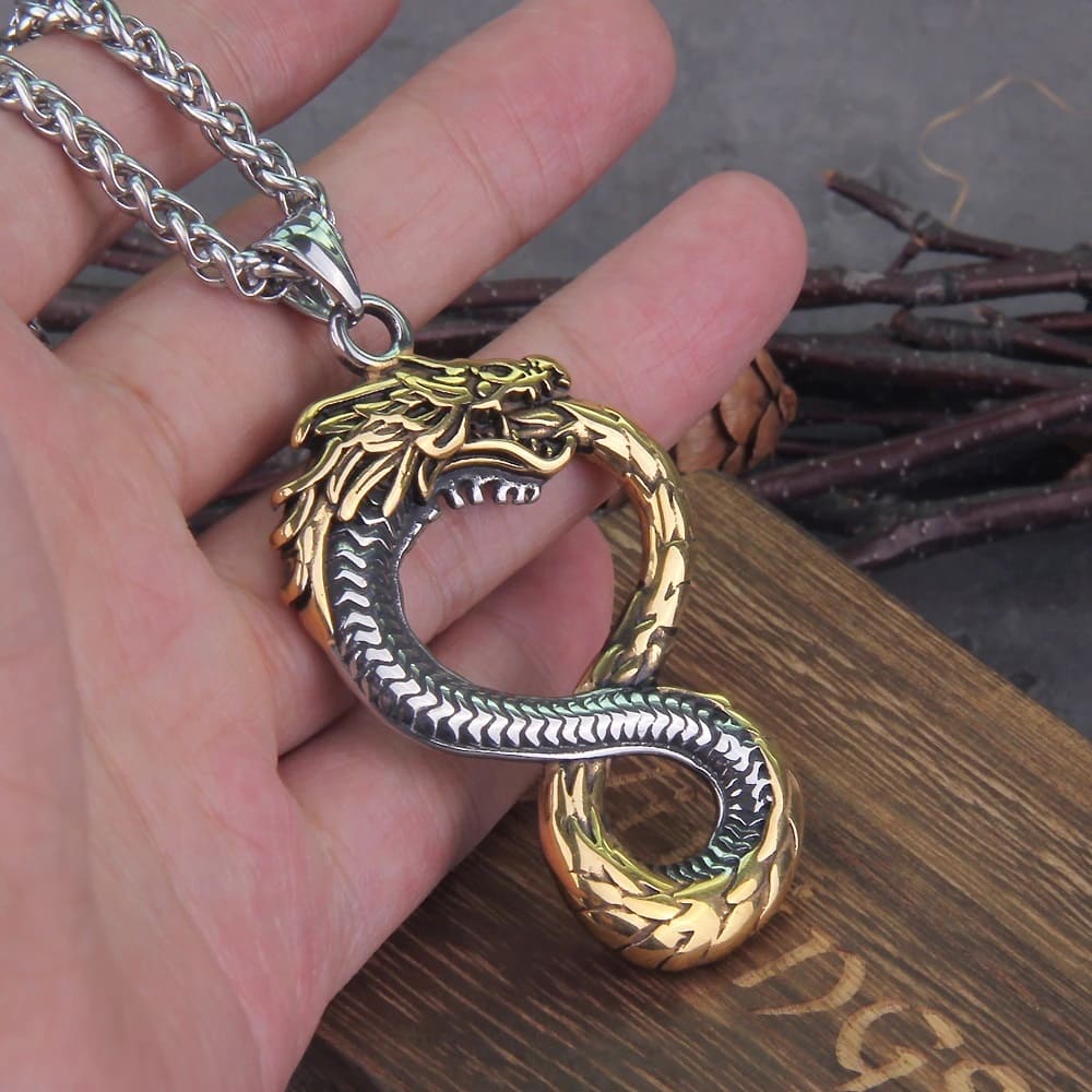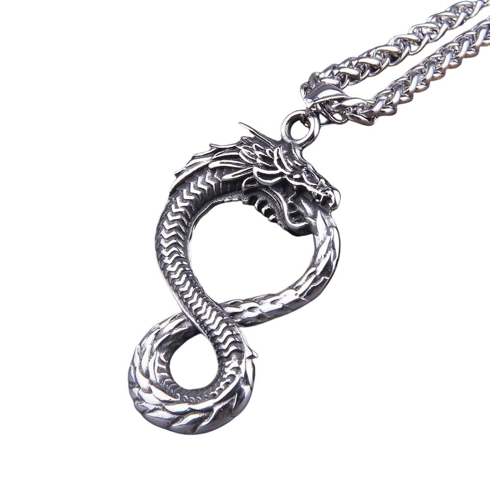 This pendant features a dragon as a symbolic representation of the ancient Ouroboros symbol.