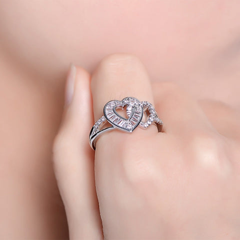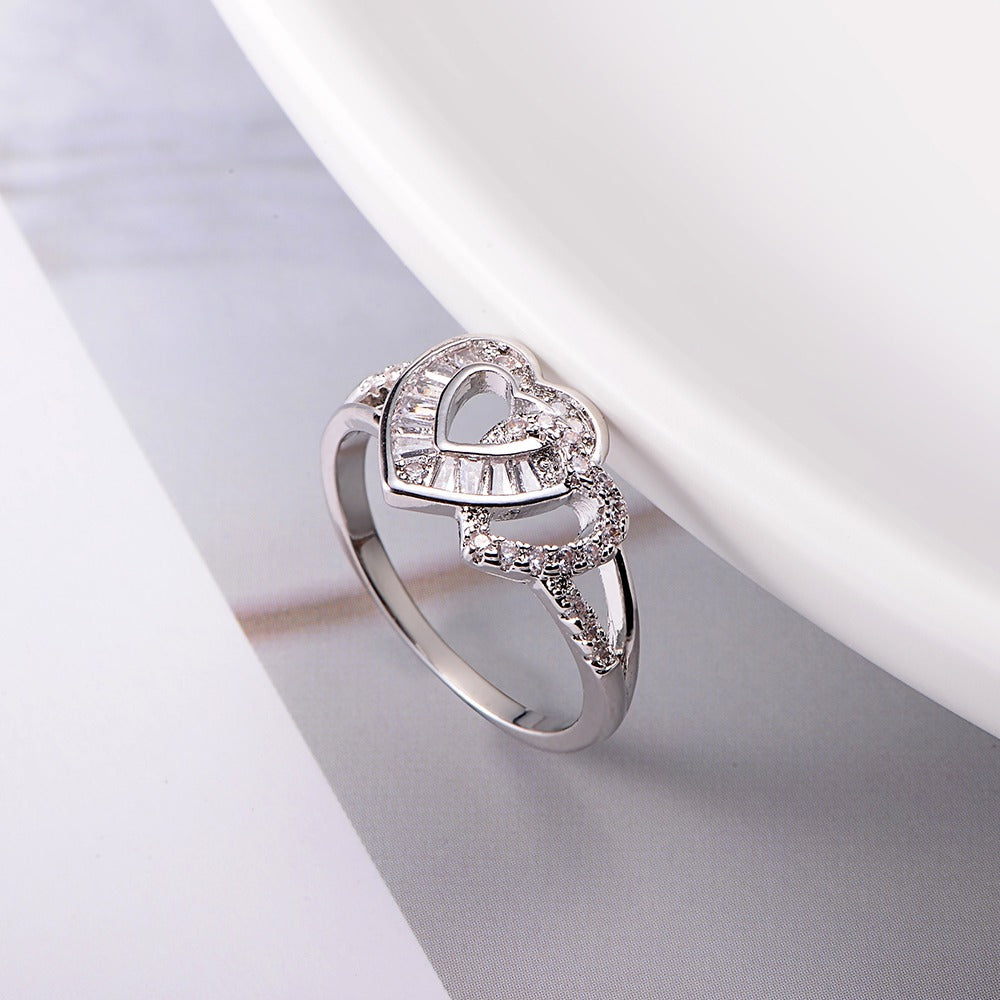 This lovely intertwined heart ring is sophisticated and full of charm. The heart-shaped ring is intertwined with a golden thread and is delicately adorned with a few discreet gemstones. The intertwined hearts ring is both a declaration of love for your significant other and a gift full of meaning.