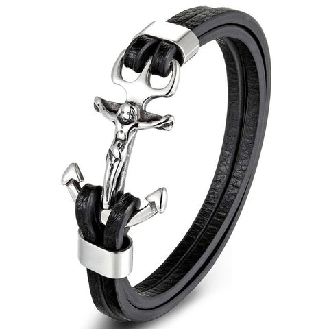 Ahoa is proud to present this high-quality bracelet. Carefully crafted from bovine leather with an anchor-style clasp revealing the cross of Christ. This modern 19 cm bracelet boasts understated elegance, available in gold or silver. Share and carry on your wrist all the love and admiration you feel for Christ with this superior quality bracelet.