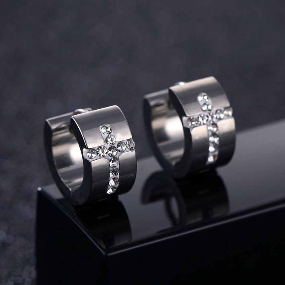 Show your appreciation and affection for your loved one with these earrings featuring stainless steel crosses. The highlight of these magnificent Christian jewellery pieces is the cross in the centre of the earring, adorned with cubic zirconia stones, the ultimate symbol of Christ's love and sacrifice.