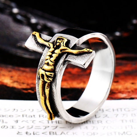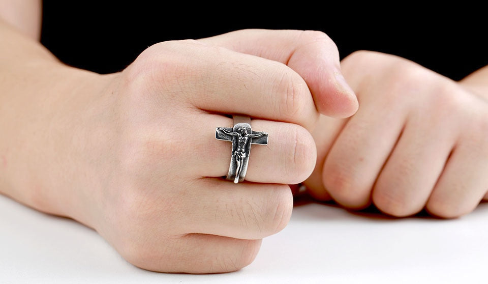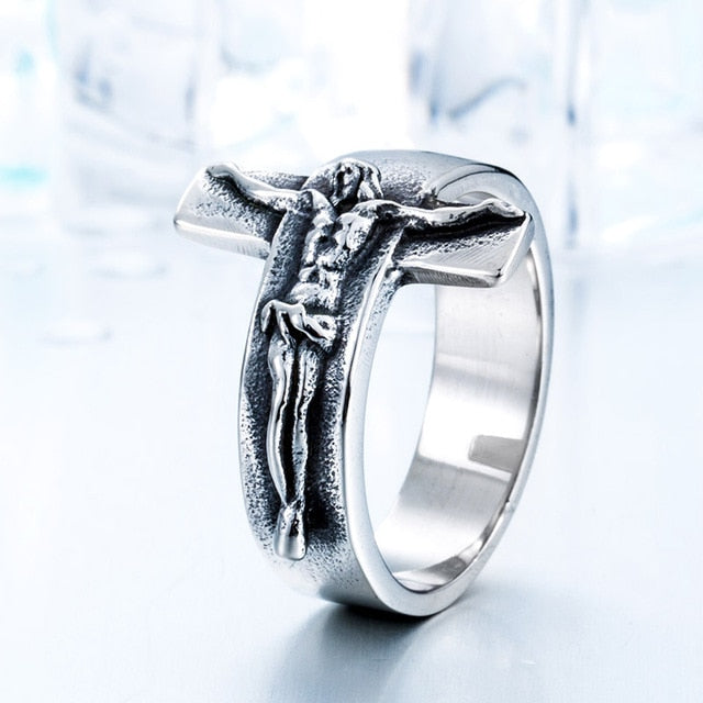 A high-quality religious ring featuring a crucified Jesus Christ. Finely engraved and made of superior quality stainless steel, this ring is sure to please, whether as a gift or for personal use. Wear the love, courage, and sacrifice of Christ on your finger and demonstrate your devotion in style.