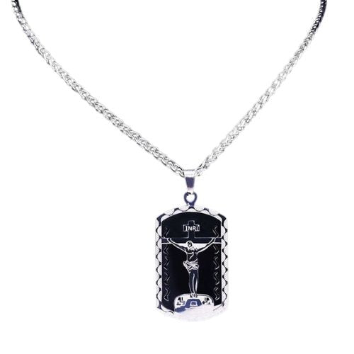 Offer a valuable and meaningful gift with this magnificent silver necklace that portrays Jesus on the cross. The silver medallion of this necklace has been carefully engraved, representing the redemptive sacrifice of our Saviour, Jesus Christ. This powerful image is a constant reminder of Jesus' infinite love for humanity and his ultimate sacrifice for our salvation.