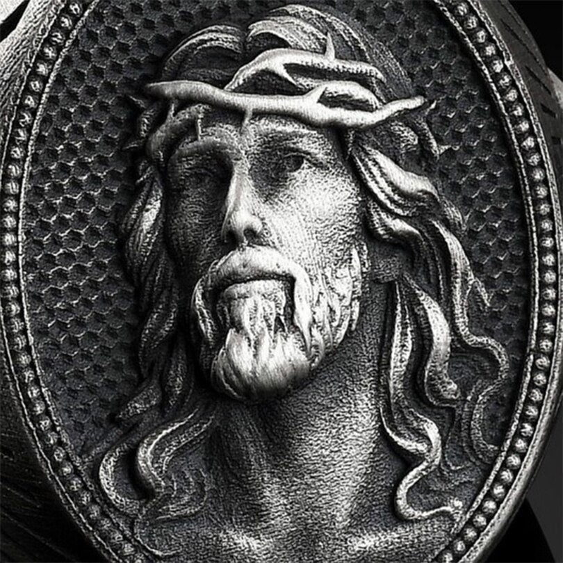 Stunning and exceptional, this beautiful 316L stainless steel Jesus cross ring is a magnificent addition to your jewellery collection! Carefully designed, this wonderful piece is a conscious and meaningful reminder of your faith in God. With a perfectly engraved depiction of our Lord Jesus Christ with a crown of thorns on the outside of the ring, this Christian jewellery is the ideal accessory for expressing your commitment to faith to the entire world.