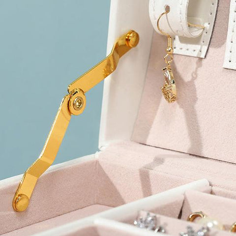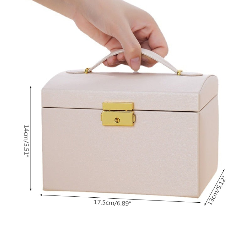 Be enchanted by the Jewellery Box for Girls, a high-quality leather jewellery case. Not only is it practical, it’s also elegant. Featuring a built-in mirror so you can admire yourself while choosing your jewellery. The key lock ensures your precious items are safe and secure, while the carrying handle makes it easy to move around. With two pull-out drawers and numerous special compartments, this box offers ideal storage for all your earrings, rings, necklaces, or cosmetics.