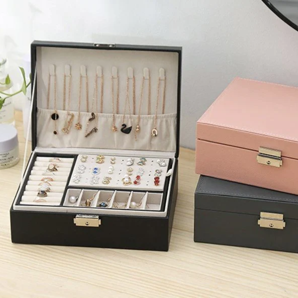 Treat yourself to this practical and elegant jewellery box made from vegan PU leather for secure and efficient storage of your accessories: rings, earrings, watches and even beauty products.