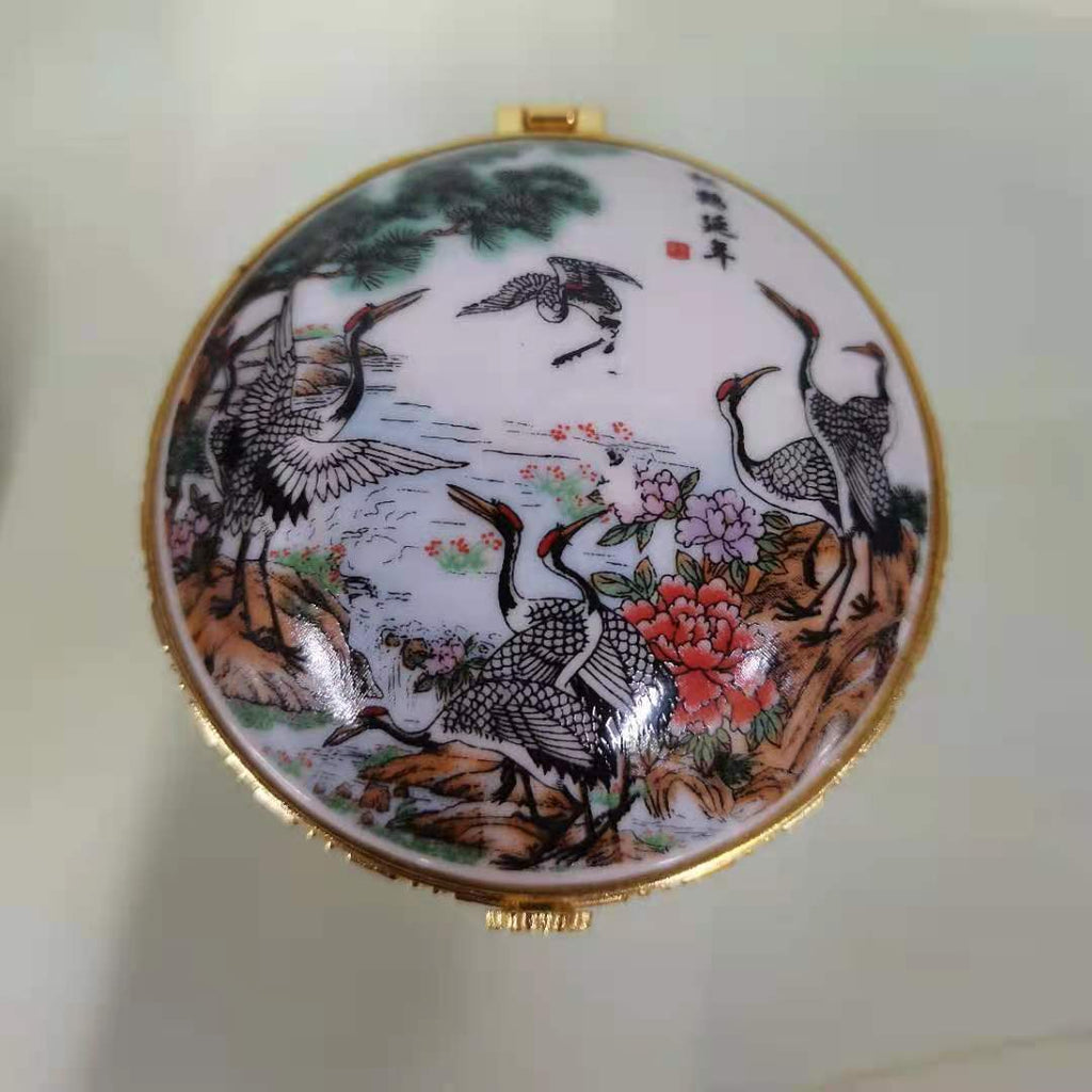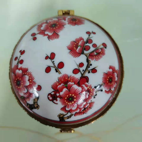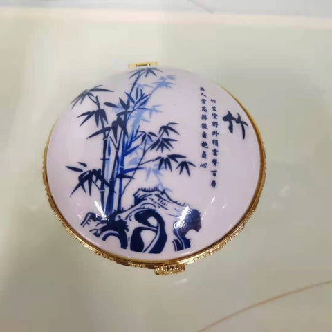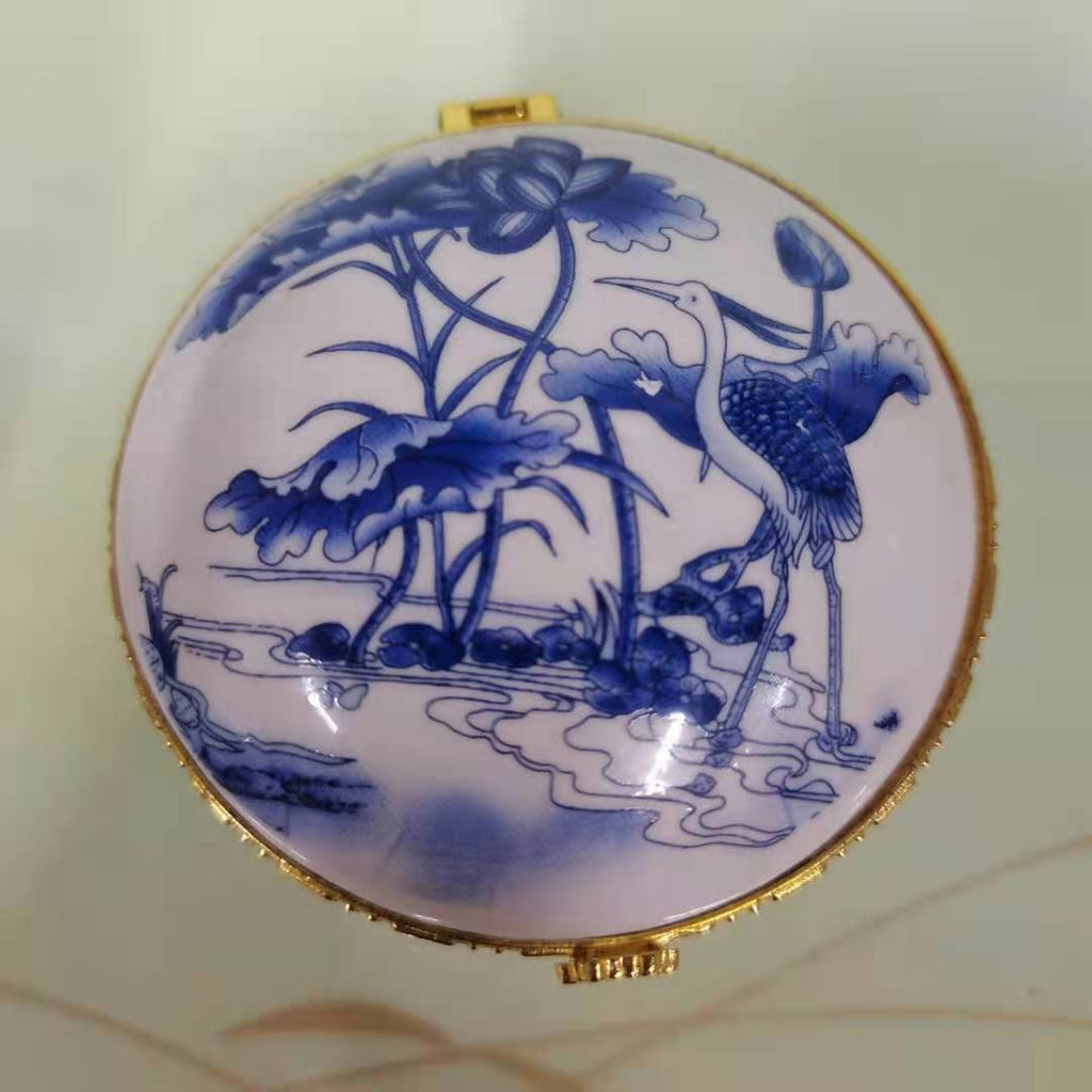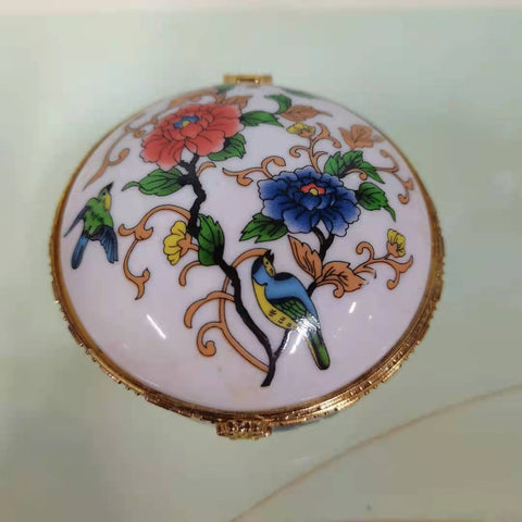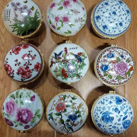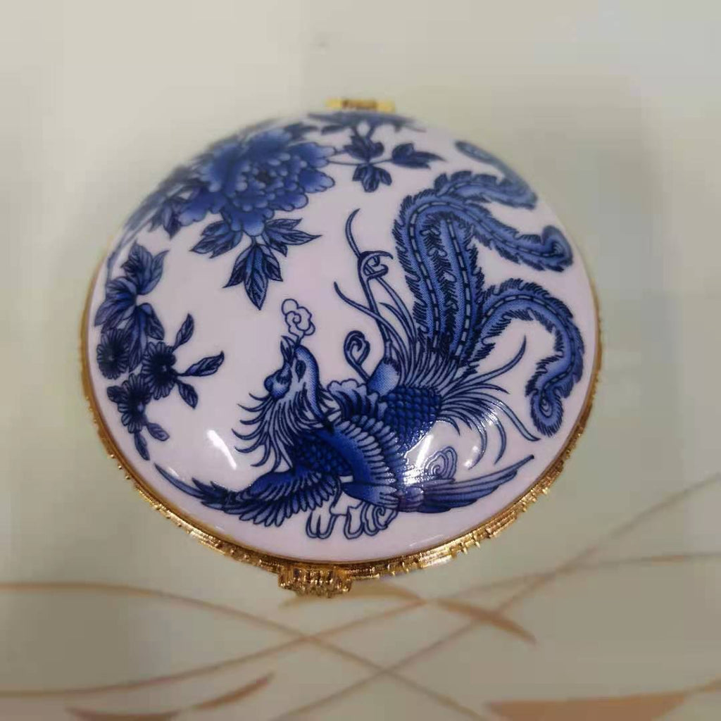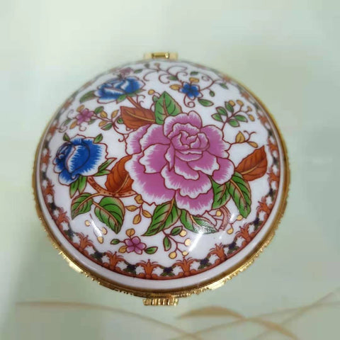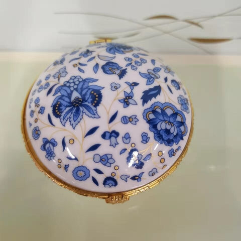 Enjoy this high-quality porcelain jewellery box. Its porcelain-style design is adorned with various patterns that add a touch of elegance to any space. Four sturdy feet provide both stability and charm, while the built-in mirror under the lid lets you admire yourself as you put on your favourite jewellery. The gold-trimmed edges give this timeless piece a luxurious finish. Treat yourself or someone special to this porcelain jewellery box and add a refined touch to your daily jewellery routine.