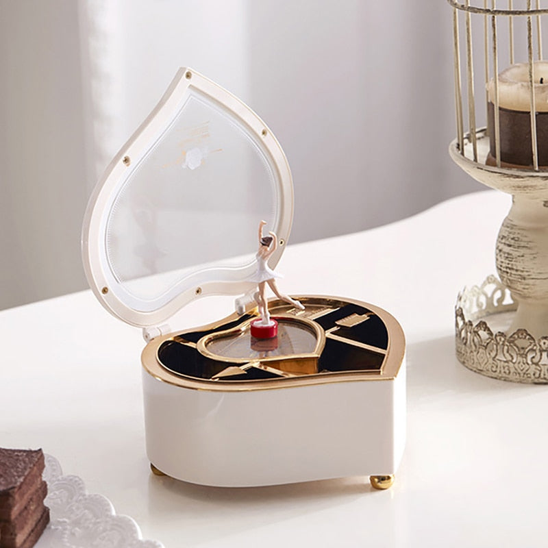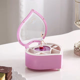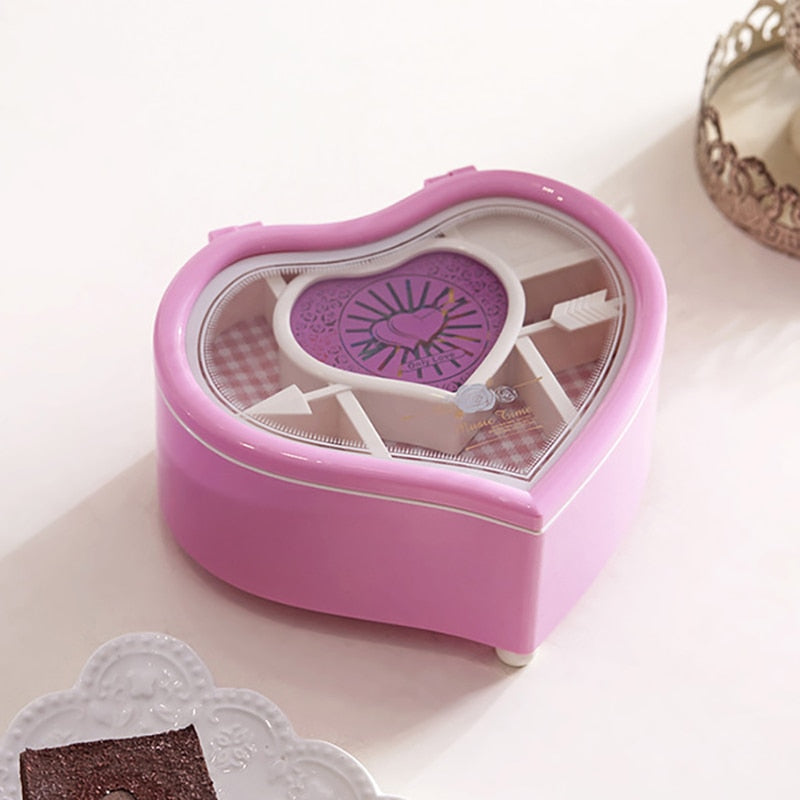 This jewellery box with music box is a charming piece that will delight music lovers and style-conscious individuals alike. Made from high-quality plastic, it combines durability with aesthetic appeal. As soon as you open the lid, a gentle melody begins to play, creating a magical atmosphere. The trendy heart-shaped design adds a romantic touch to your storage space. Thanks to the transparent lid, you can easily view your jewellery while keeping it protected. In addition, the three practical feet ensure a stable stand.