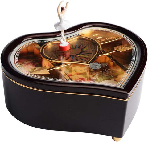 Add a Touch of Retro Charm to Your Treasures with This Antique-Style Music Box Jewellery Case in Heart Shape with Light Feature