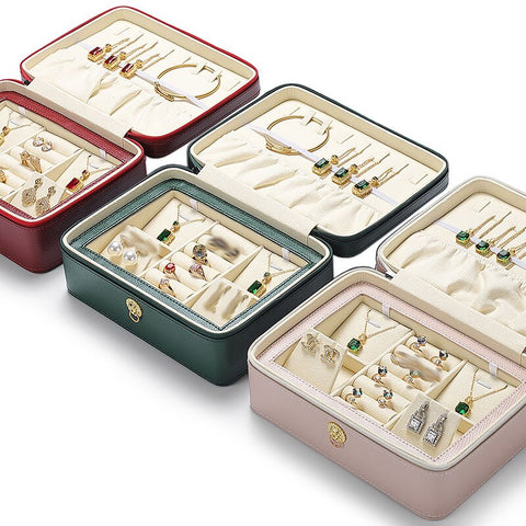 Don’t part with this beautiful leather jewellery box. Its simple design is enhanced by elegant gold detailing that adds a touch of sophistication. The interior, lined with soft fabric, provides optimal protection for your precious jewellery. You’ll find a handy elastic pocket to safely store your smaller pieces, along with hooks and dedicated sections for your necklaces and other accessories. With its sturdy zipper, this leather jewellery box is both practical and secure—perfect for organising and transporting your jewellery wherever you go.