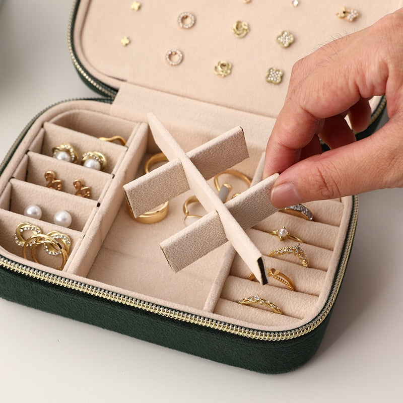 Travel safely with our velvet travel jewellery box – sleek design, compact size, and removable, dedicated compartments.