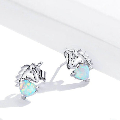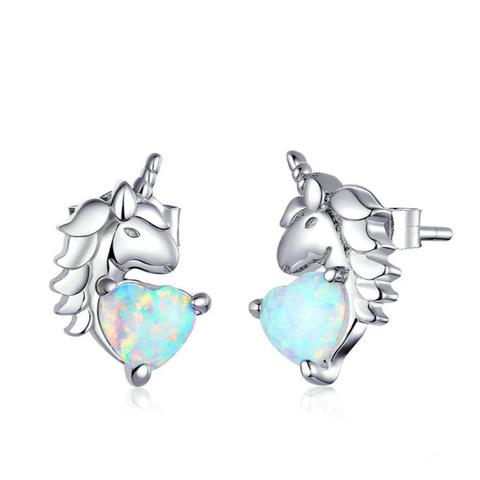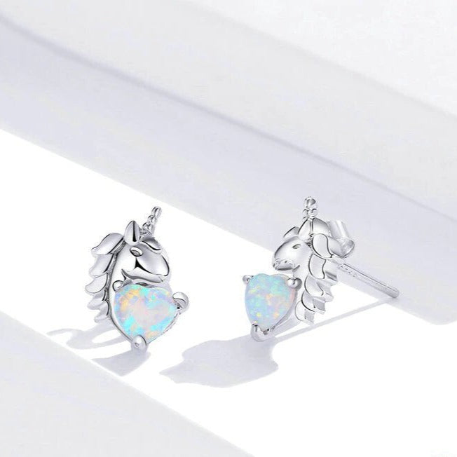 Offer your daughter this unique piece of jewellery: Kawaii Unicorn Earrings with a unicorn head and luminous resin heart!