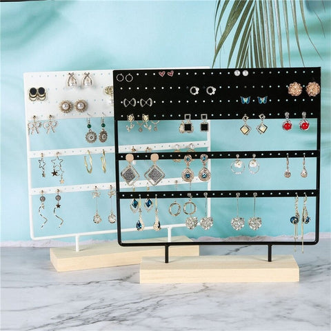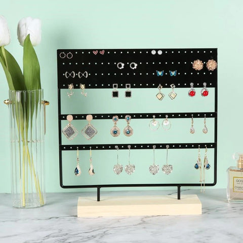 This large earring stand is available in black or white. It allows you to hang up to 144 pairs of earrings, primarily stud earrings, but it can also be used for dangling earrings! Its wooden base and metal frame ensure stability and prevent it from tipping over during use.