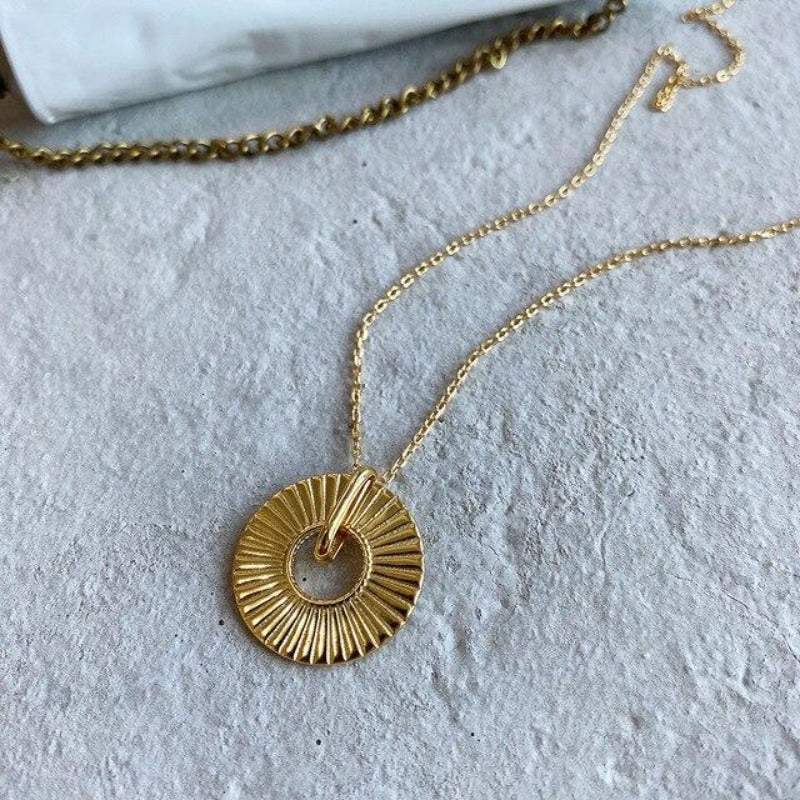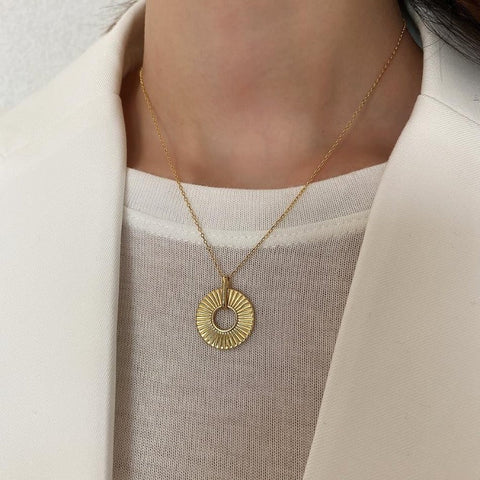 Indeed, the yellow of the sun is not the same as the colour of gold. Now enjoy a golden sun with this magnificent large golden sun necklace.