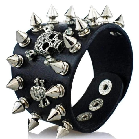 Stand out with a gothic look using this spike bracelet. Made from vegan leather and reinforced with steel details, such as spikes and skulls, this bracelet is a timeless accessory for the gothic and punk styles. Thanks to the snap buttons fixed at one end, it easily adapts to most wrists.