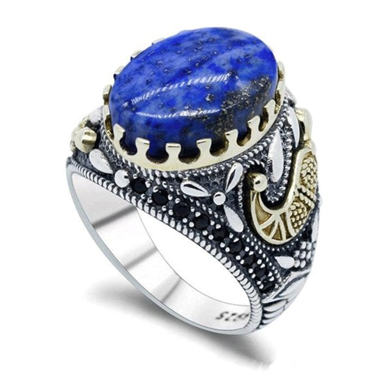 This stunning lapis lazuli signet ring particularly attracts men with its commanding and robust style.