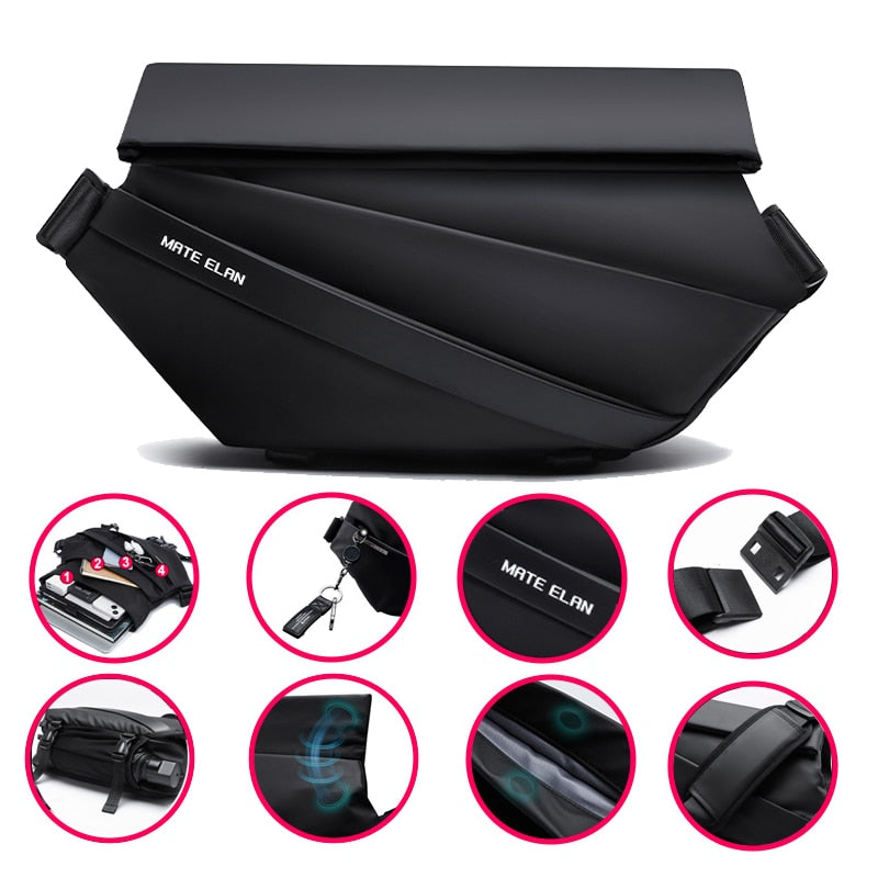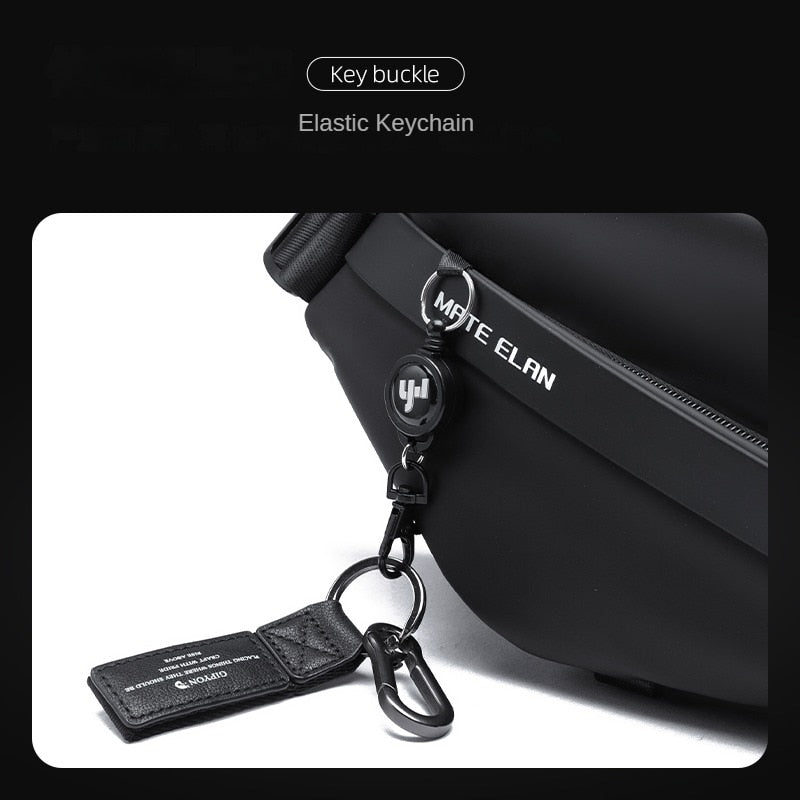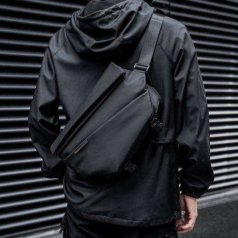 This large men's waist bag is an essential accessory for active men seeking functionality and style. This black, waterproof bag features a sleek geometric design and is specially designed to cater to your daily needs, be it for work, commuting, or outdoor activities.