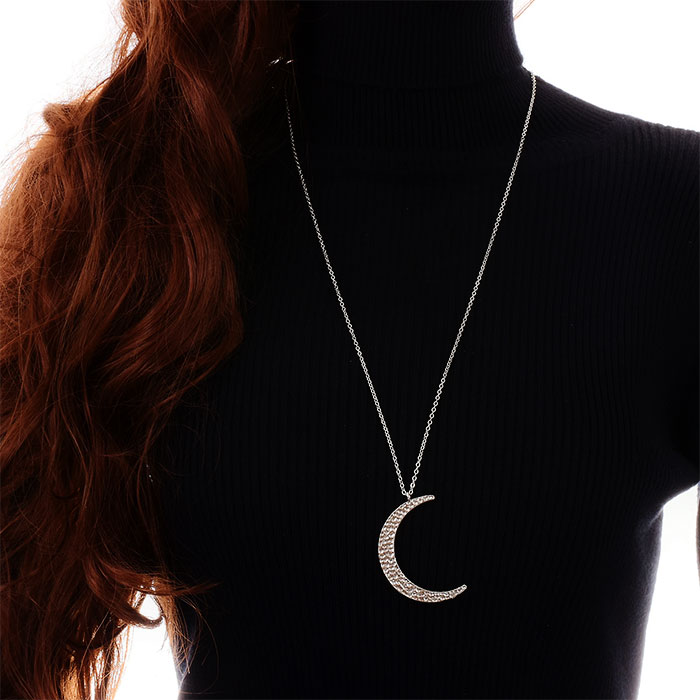 Add a touch of glamour and strength to your look with this necklace featuring a large moon. This piece finds the perfect balance between vintage and bohemian styles.