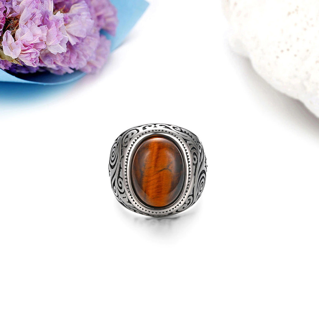 This large ring with tiger eye stone helps you develop your style. This semi-precious stone has many qualities that help you become a confident person.
