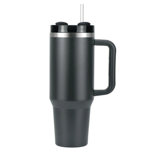 This large travel mug perfectly combines functionality and modern design. Equipped with a sturdy handle and a convenient removable straw, this cup is ideal for all situations, whether on the go or in the office. Its compact size makes it easy to carry in a backpack or in the car's cup holder. Made from high-quality and durable stainless steel, this thermal cup keeps drinks cold for up to 24 hours and hot for up to 8 hours - all day long.