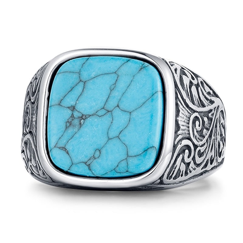 This dazzling ring with a large turquoise stone is the perfect way to add a subtle touch of elegance to your everyday look. The classic and elegant design in stainless steel is adorned with a brilliant turquoise stone, giving it a unique and sophisticated appearance.