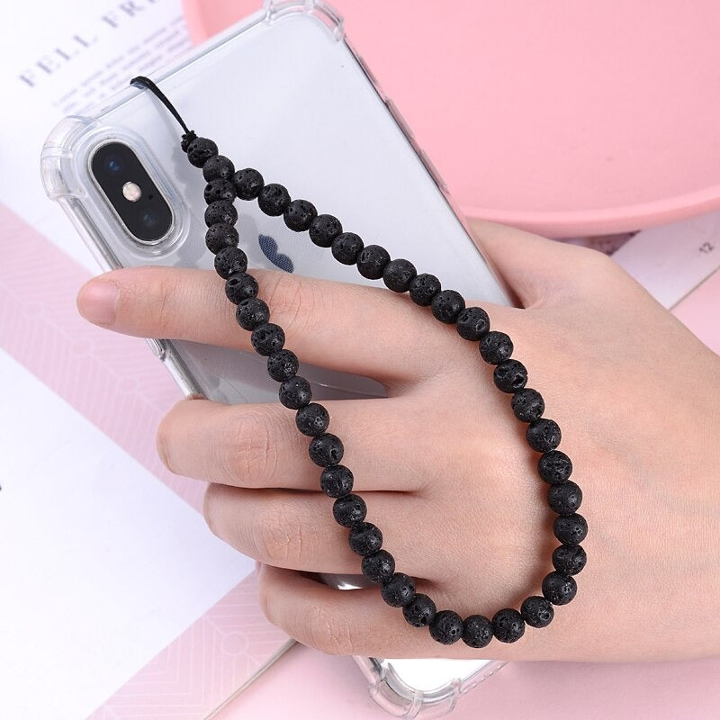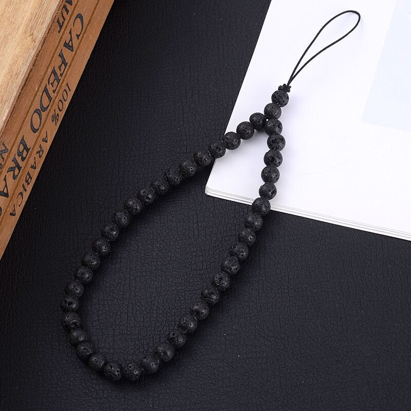 Beautiful mobile phone accessory with lava beads.
