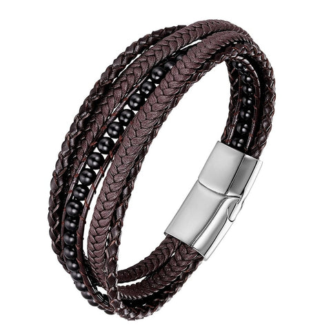 Discreet and sophisticated, this men's leather bracelet with black beads is an elegant accessory for men seeking a fashion piece that combines the nobility of leather with the natural charm of black beads. Made from genuine leather and equipped with a practical stainless steel metal clasp, this bracelet easily slides onto your wrist and complements all your daily looks with style and durability. Whether as a gift for someone special or to enhance your own personal style, this men's leather bracelet with black beads is a safe choice in our collection.