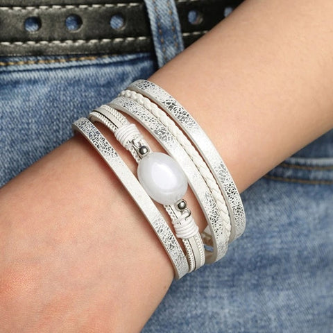 You're going to love this women's leather bracelet with a white pearl.