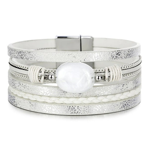If white is one of your favourite colours in women's fashion, this leather bracelet for women with a white pearl will certainly add the finishing touch to your look. Whether you're at work or at home, this elegant accessory with a simple design is easy to wear thanks to the practical stainless steel clasp. Our women's leather bracelet with a white pearl is a true must-have from our collection, thanks to the natural white pearl that stirs emotions and has all the qualities to enhance your look and enrich any jewellery collection.