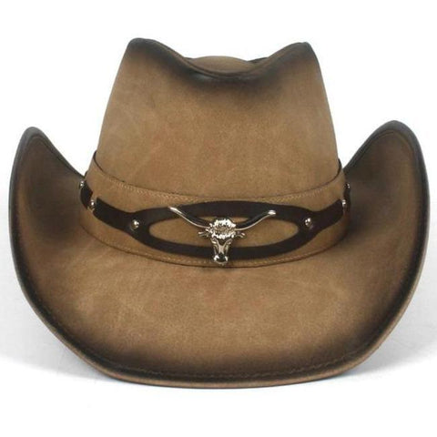 Step into this high-quality leather cowboy hat and feel the power of old west tradition. Embark on an exciting rodeo with this leather cowboy hat. This traditional accessory is essential for any true cowboy. It evokes memorable scenes from Sergio Leone's western films.