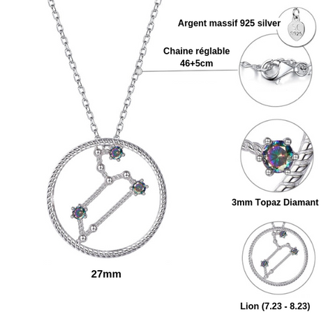 In the zodiac, the lion symbolises power and royalty. Our silver zodiac lion necklace accompanies you every day, as the sun lights up the earth. This women's pendant is made from genuine 925 silver.