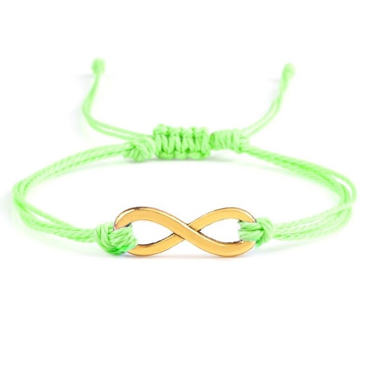 This light green braided infinity bracelet is made of high-quality cotton and is designed to provide a special look. The fibres of the rope are softly interwoven, offering a pleasant and comfortable touch sensation.