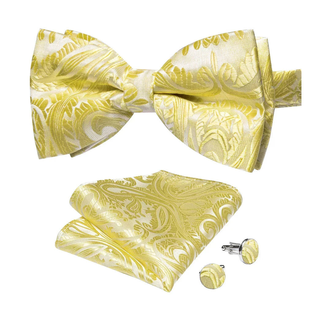 The set includes: bow tie, pocket square, and 2 cufflinks.