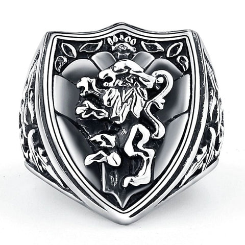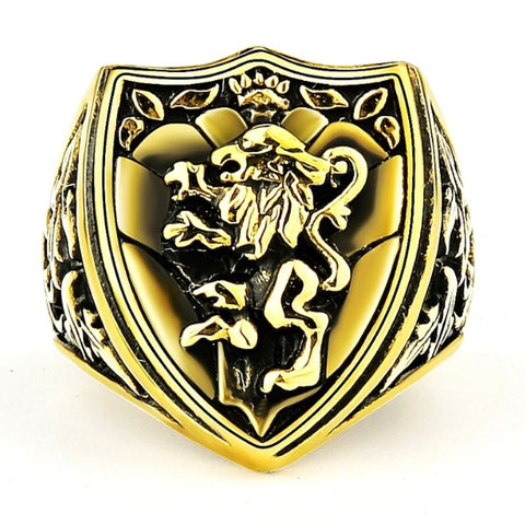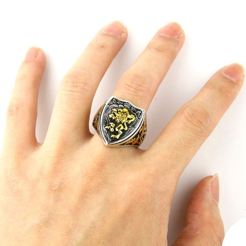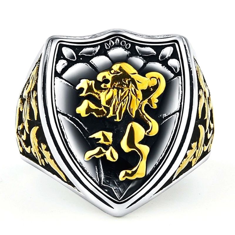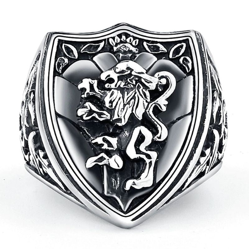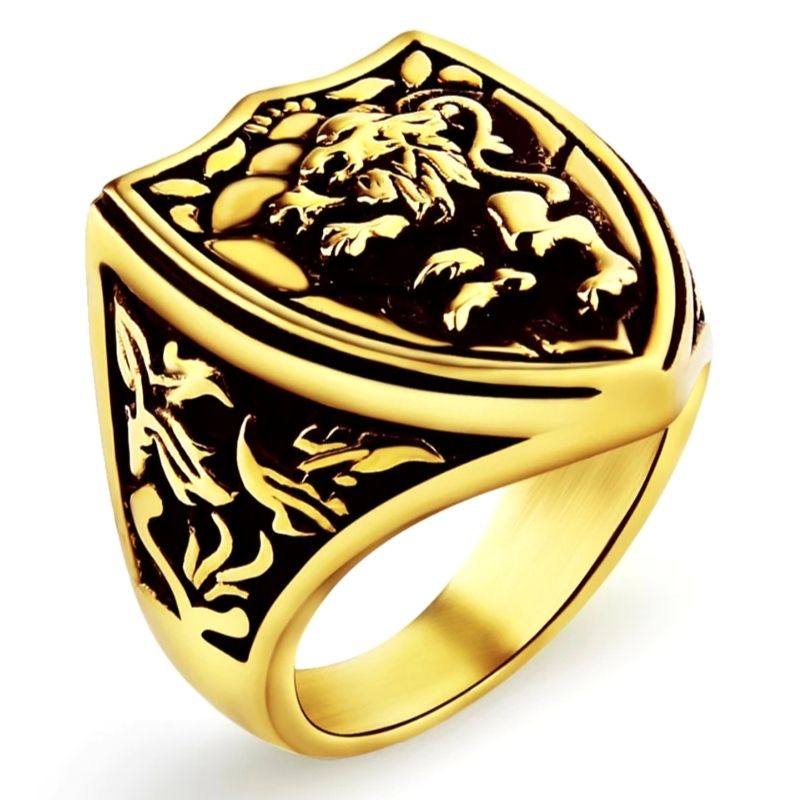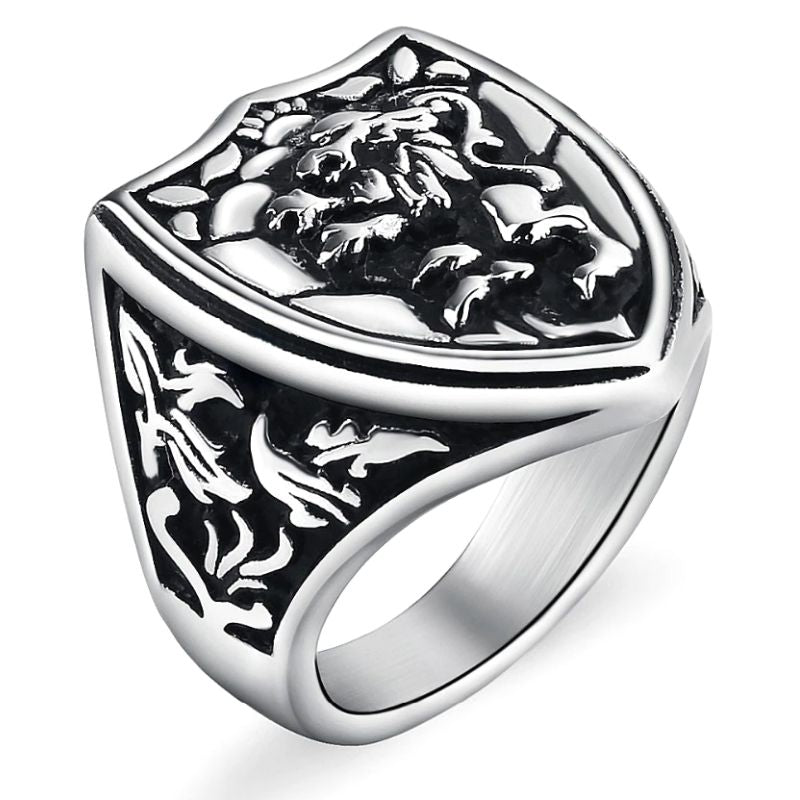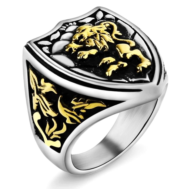 This lion crest signet ring is available in 3 versions: gold, silver, and gold with silver. All feature a lion engraved on a crest inspired by the medieval era. This steel jewelry is highly symbolic and expresses values such as power and authority.
