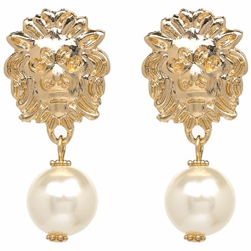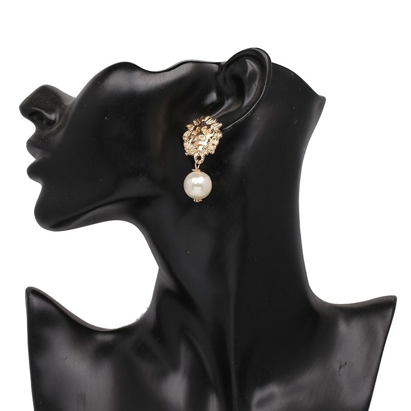 Dazzling Lion Pendant Earrings with Shimmering Pearls!