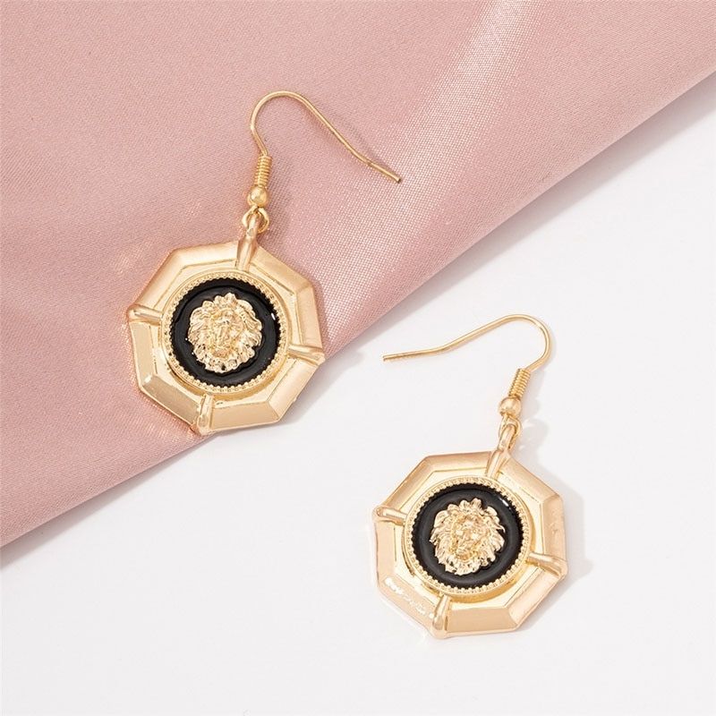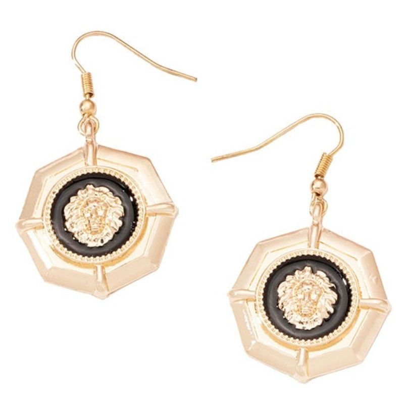A stunning pair of lion earrings for women! Simple yet striking, this pair features a lion's head surrounded by black detailing, giving the earrings an elegant look. They can be worn day or night and match with various clothing styles. Easy to put on and comfortable to wear.