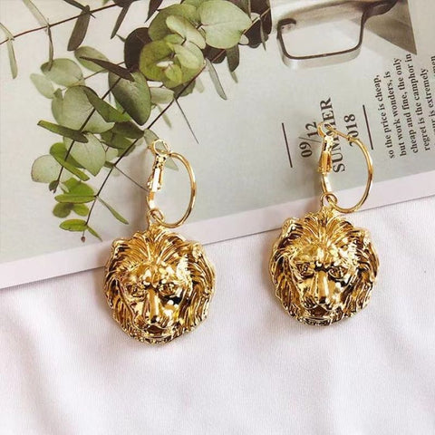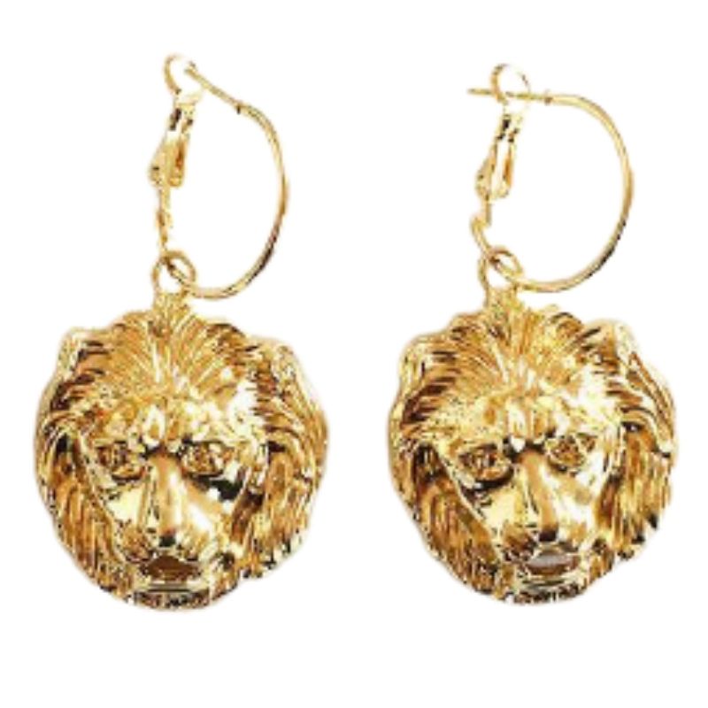 Superb pair of lion's head earrings! Beautiful pair of earrings with a lion's head pendant hanging from a stylish Creole-style gold earring. A sophisticated piece of jewellery with many details on the pendant. This accessory will be the highlight of your collection! Suitable for both day and night wear. Comfortable to wear.