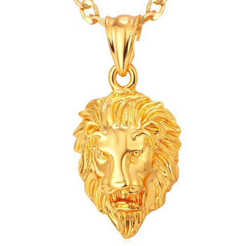 Excellent high-density lion face pendant. Gold-toned steel chain and lion's head with a distinct style. Symbol of courage and leadership, wear this necklace as a trophy and face life's challenges with the agility of the famed carnivore.