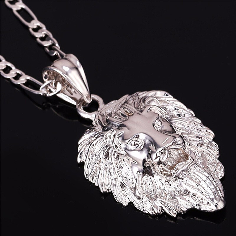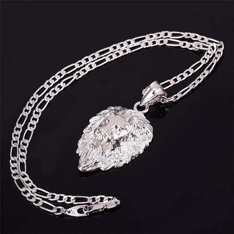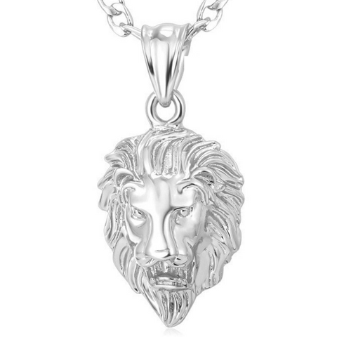 Impressive necklace featuring a lion's head on the mane. Silver-coloured stainless steel chain and lion's head with a unique style. Symbol of courage and dominance — wear this necklace as a trophy and face life's challenges with the agility of the famed carnivorous predator.