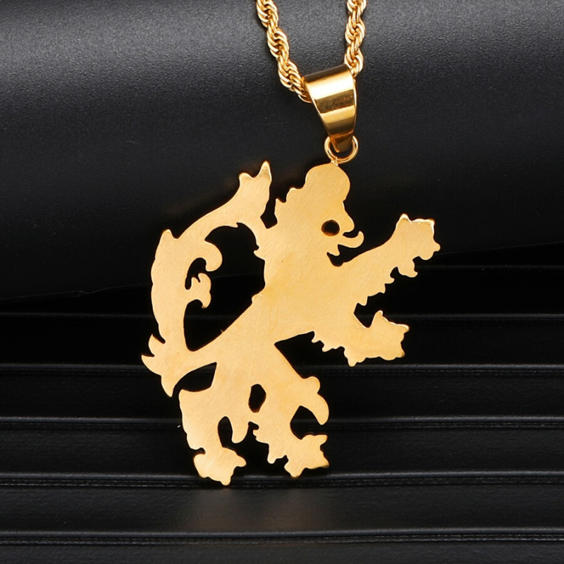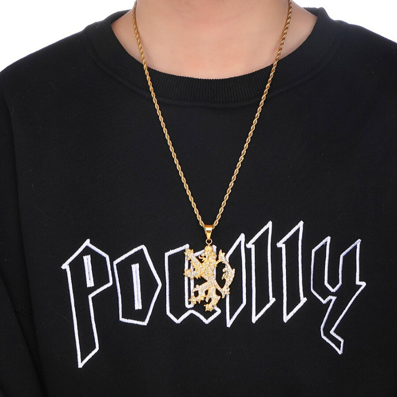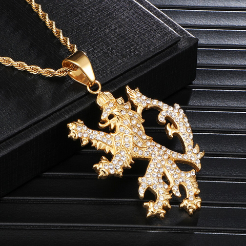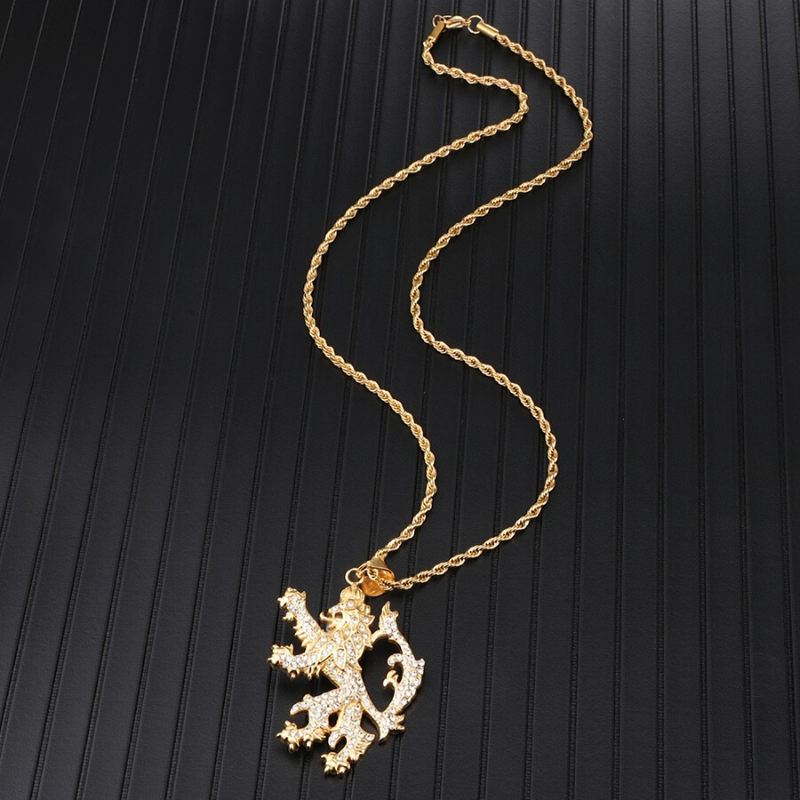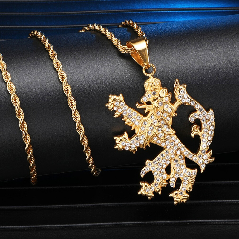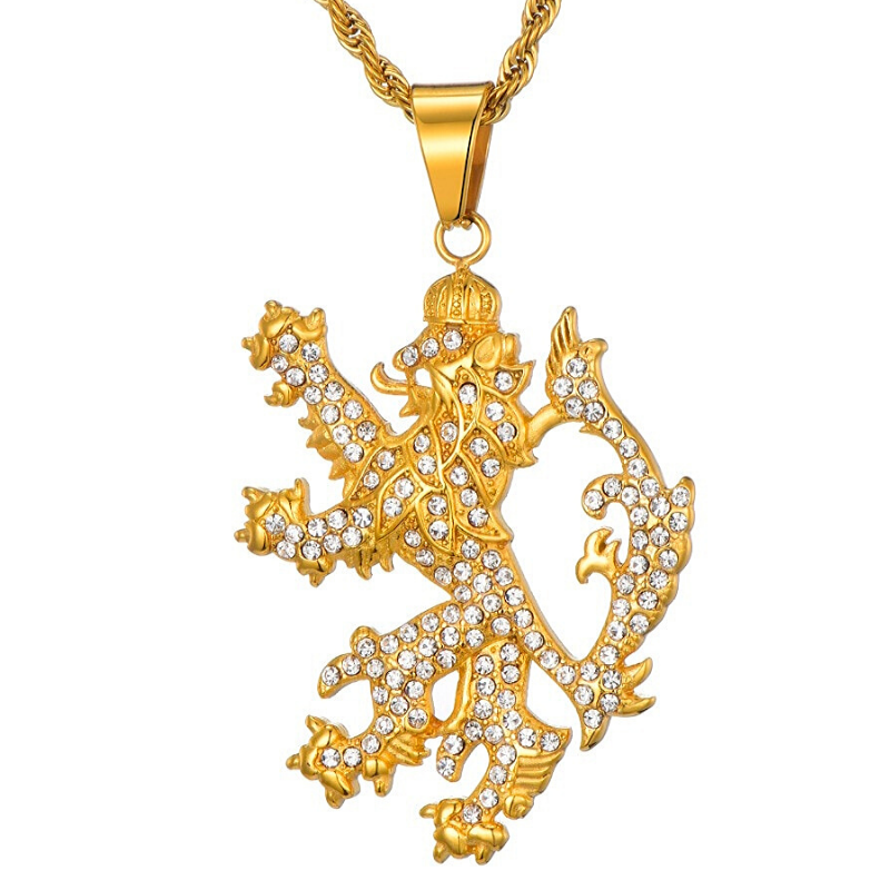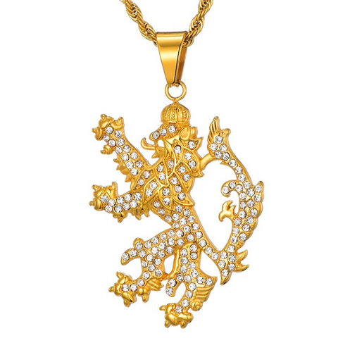 Imperial Lion of Judah necklace encrusted with diamonds for an extremely luxurious look. A profiled lion with its tongue out that exudes nobility and character. A beautiful unisex accessory in gold steel.