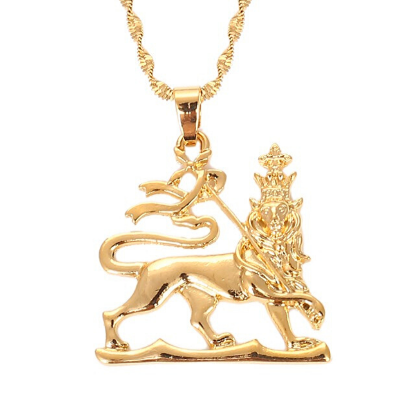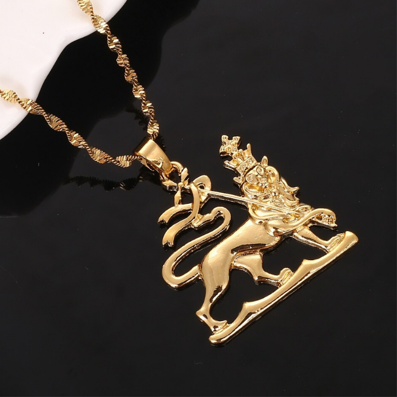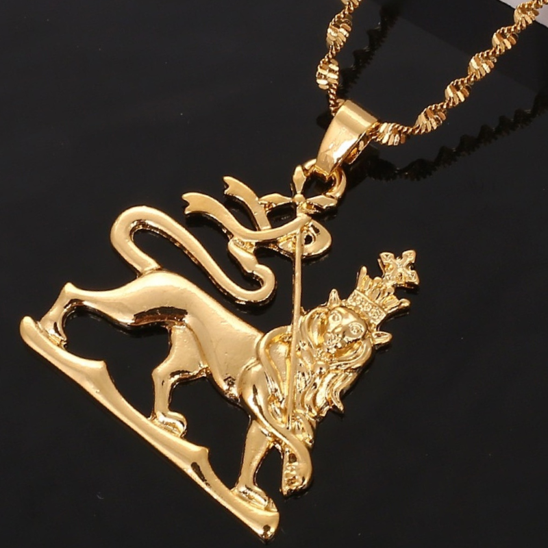 Stunning Judah Lion pendant with a truly realistic appearance. The lion's profile expresses nobility. We love this necklace because the lion pendant features a crown and its long tail connects to a beautifully crafted rope-like chain, which is very comfortable to wear.