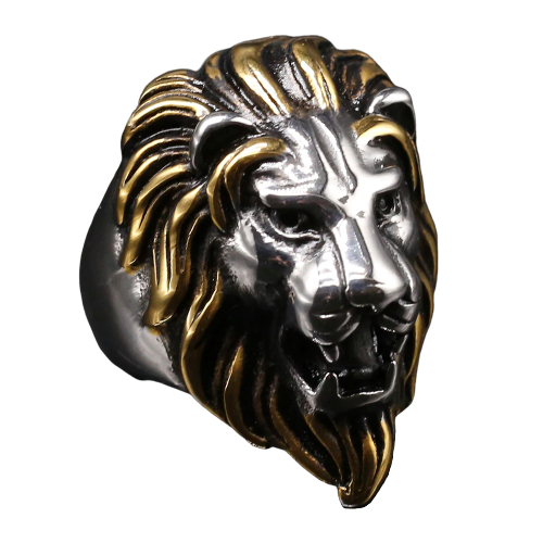 Combine your strength with this steel ring featuring a lion's head and a magnificent fur hat. A symbol of this magnitude commands respect around you.