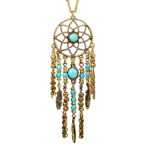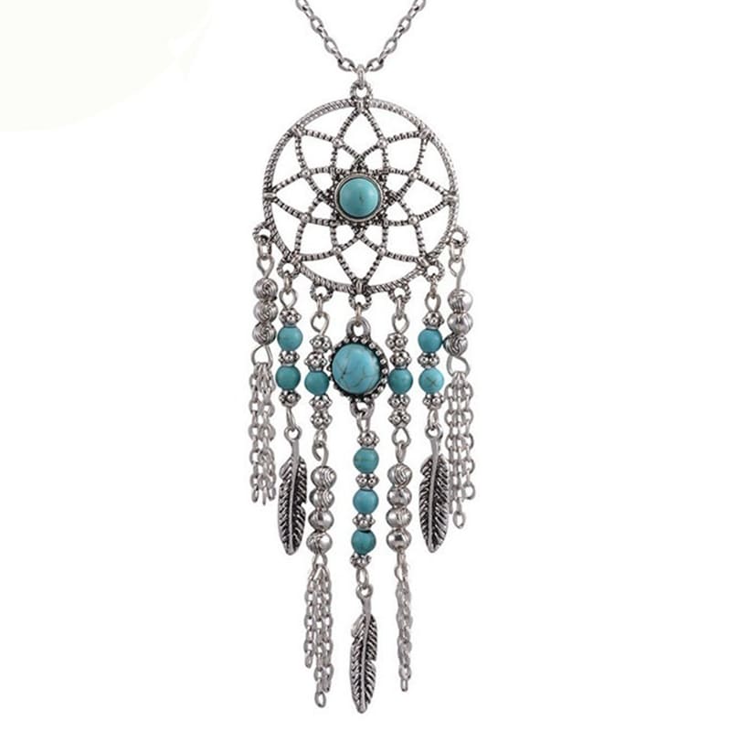 Long Necklace with Dream Catcher and Turquoise Stones