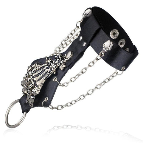 This long gothic bracelet is unique. Made of leather adorned with a Skeletal Hand in steel, it's the ideal bracelet for punks and goths seeking an out-of-the-ordinary style!